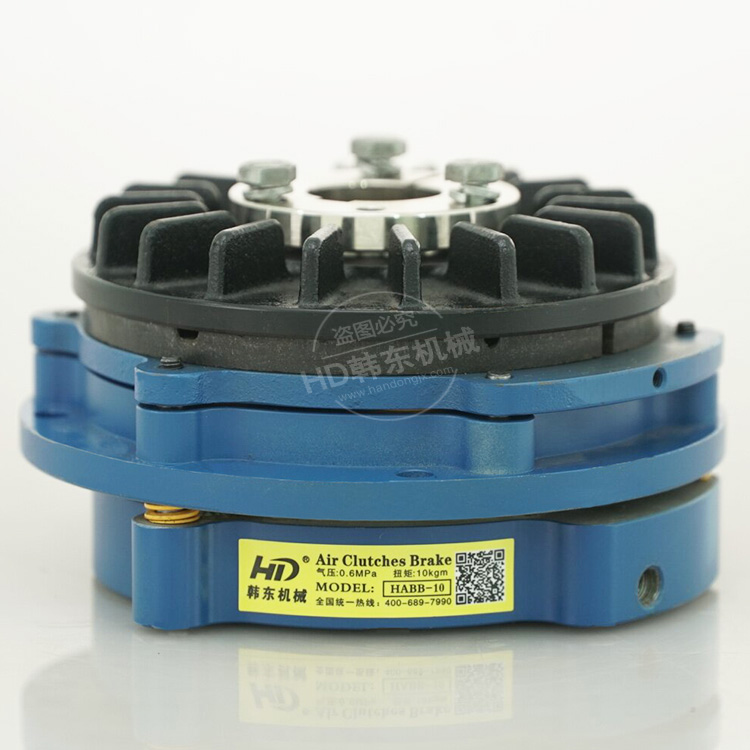 HABB型安全用制动器在停止供气时被制动弹簧停止,供气时解放。适合于防止安全事故,及紧急制动。小型电机使用HABB型,大型电机使用HDBB型其扭矩范围从0.01kgf.m-16600kgf.m的广泛规格可供选择。HABB型制动器靠制动弹簧来控制,靠空气压来放开。如从流量控制阀供给空气,气缸会发生移动,盘头螺丝和活塞架一起连动,压缩制动弹簧,摩擦板和附轴衬套圆盘分离,解除制动。如排除空气,制动弹簧挤压活塞架,摩擦板接触到附轴衬套圆盘。 HABB断气刹车器的主要特点: