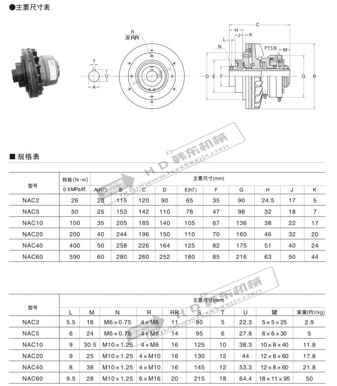 上海韩东NAC-10/NAC-20/NAC-40气动离合器