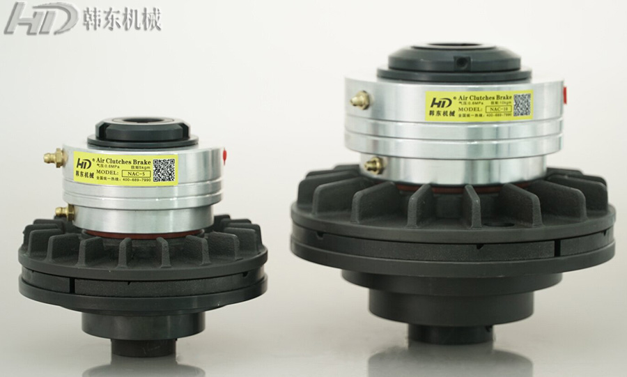 气动离合器NAC型又称空压通轴式离合器,主要靠空气压来连结,靠复归弹簧来放开。圆盘靠空气压沿轴方向滑动,接触摩擦板。圆盘、摩擦板等,被组装到轮毂上,成为一体化构造。摩擦板可用拧开调整螺帽的方式进行分解,交换简单。
